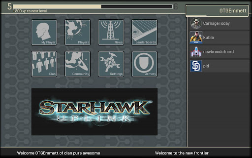 Community: Players can link to various Starhawk social sites including Facebook, Twitter, The official Starhawk blog, PlayStation blog as well as directly link to promotional videos and other Starhawk community driven sites.