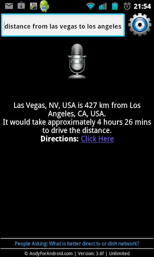 One of Andy's great features is its design to work with Bluetooth headsets (A2DP only, must pair with at least one device). Andy (using your Android phone or tablet) will recognize your voice and speech, search the Internet for the best answer, and read it back to you in a clear voice. The answer will also be displayed on your device screen.
