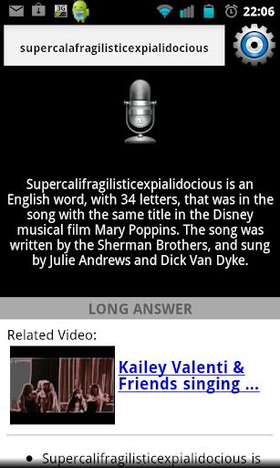 To ask a question, tap the microphone button on the application home screen. Alternatively, you may give your device a little shake (this requires enabling the Shake Recording option) or simply type in your question manually to get the answer.